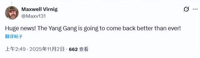 球迷Maxwell Virnig感慨:“天大的好消息!‘楊之隊’一定會強勢回歸,變得比以往更棒!”