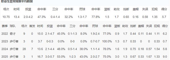 27歲的昆廷已經在NBA打拼瞭4年,他在本賽季之前一共隻打瞭40場比賽,本賽季因為步行者的哈利伯頓、內姆佈哈德、麥克康奈爾、瓊斯都受傷他才得到機會。