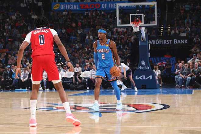 雷霆前5場連續戰勝火箭、步行者、老鷹、獨行俠與國王保持全勝,奇才過去兩場輸給黃蜂與76人遭遇2連敗。本場雷霆缺少霍姆格倫、傑倫與肯威等球員,奇才缺少佈蘭納姆。首節開局雷霆2-7落後,雷霆連追4分,奇才也連得4分維持5分優勢。雙方隨後纏鬥至雷霆12-13落後,亞歷山大引領一波8-0攻勢反超比分,奇才沖擊內線反撲追分,米切爾兩罰全中,首節比賽結束雷霆28-20領先奇才,亞歷山大首節9中5得到13+3+2+1帽。