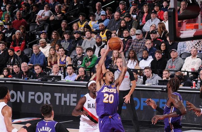 尼克·史密斯在第二節中段重新上場,他連續兩次助攻八村壘得分,然後自己終於迎來瞭得分機會,他突破上籃得分,隨後他連進兩記三分球,幫助湖人追分。湖人半場52比53落後開拓者1分。