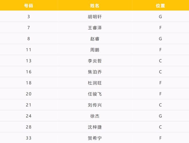 開打前夜,廣東隊也公佈瞭最終出戰的12人名單: