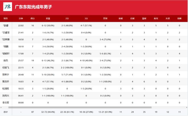 全場數據,徐傑19分4助攻、趙睿16分3籃板5助攻,賀希寧11分、焦泊喬9分6籃板;山東方面,陶漢林22分12籃板,王嵐嶔14分4籃板4助攻3搶斷、李祥波10分7籃板4助攻。