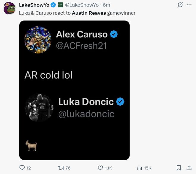卡魯索與東契奇都在IG上對裡夫斯的表現做出瞭評價,東契奇又來一次GOAT。
