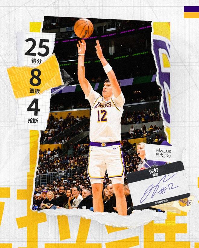 東契奇引領湖人6人得分上雙戰(zhàn)勝熱火,外加裡夫斯26分11助攻,他們組成強力後場雙槍。至於拉拉維亞打出加盟湖人最強一戰(zhàn),他13中10高效得到25分8籃板3助攻。