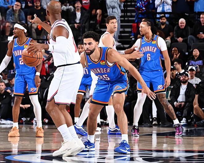 本場比賽中,雷霆的替補後場新星阿傑-米切爾(Ajay Mitchell)的表現又一次令人眼前一亮。米切爾全場出場19分38秒,投籃10中4,三分線外1中0,得到瞭8分4籃板3助攻4搶斷的數據,還有2次失誤和2次犯規,正負值更是達到瞭全場最高的+31。米切爾在進攻端的手感還是比較一般的,他並沒有得到太多的分數,他的進攻效率也不是特別理想。不過米切爾也是展現出瞭一定的傳球能力和組織能力,他在支配球和傳導球方面還是做得相當不錯的。最關鍵的是,米切爾在防守端的表現令人刮目相看,他直接變身防守大閘並且在防守端起到瞭決定性的作用。米切爾幫助雷霆第二陣容建立起瞭巨大的領先優勢,這也是雷霆最終能夠比較順利地拿下本場比賽勝利的重要因素。