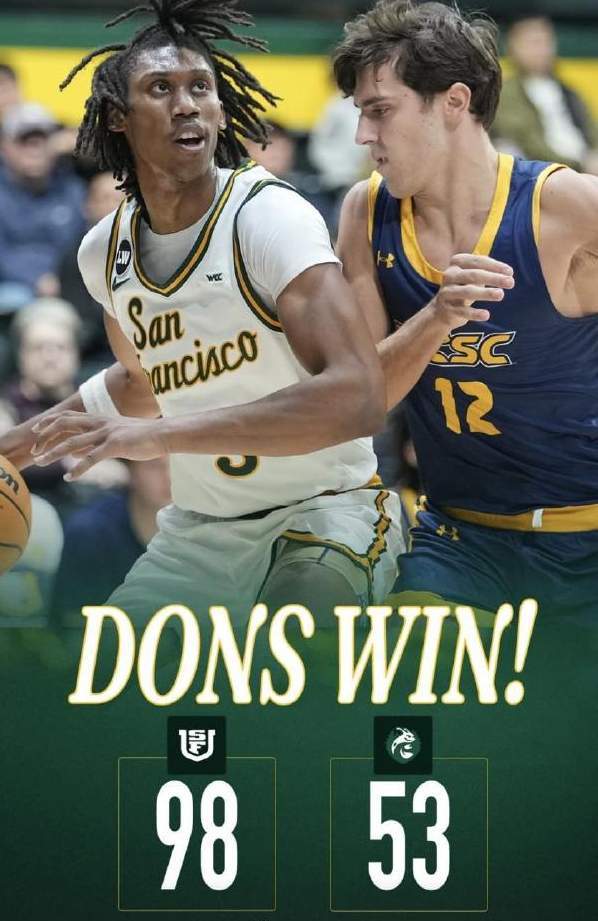 到瞭下半場,舊金山大學有些松懈,被加州大學聖克魯茲分校追回瞭一些。憑借下半場的47-38,最終,舊金山大學98-53大勝對手45分,贏得真是相當痛快瞭。