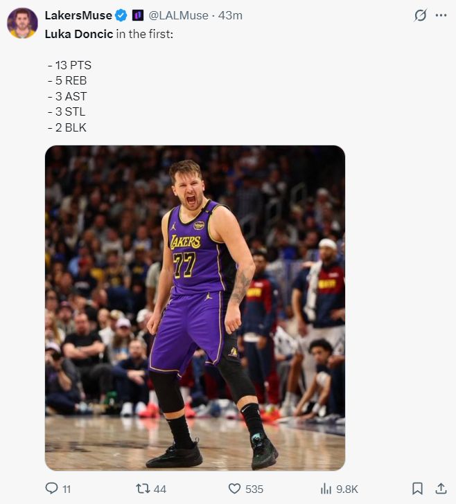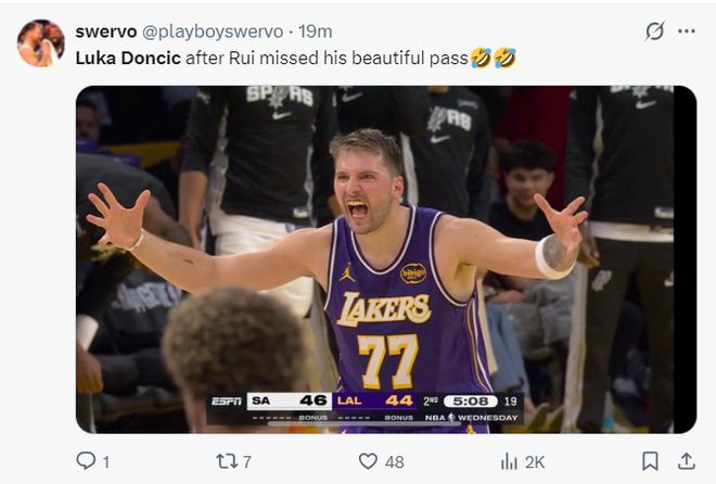 裡夫斯、詹姆斯繼續(xù)傷停,盧卡-東契奇復(fù)出帶隊,上一場湖人平民陣容擊敗瞭開拓者,東契奇此役復(fù)出帶隊面對狀態(tài)不俗的馬刺。首節(jié)東契奇就展現(xiàn)瞭超級魔術(shù)師的風(fēng)采,首節(jié)拿到13分5籃板3助攻3搶斷2蓋帽,東契奇積極性太強(qiáng)。