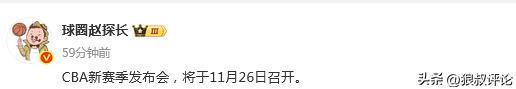 北京時間11月6日,根據媒體人“球圈趙探長”的報道,CBA公司將在本月26號召開新賽季發佈會。