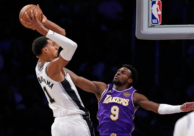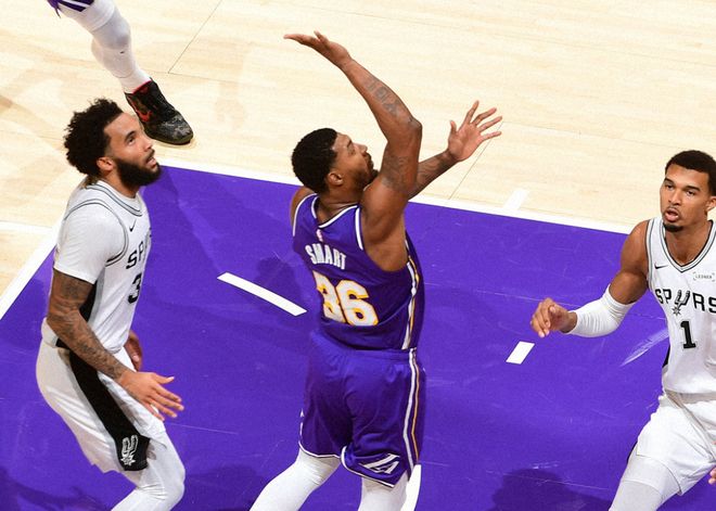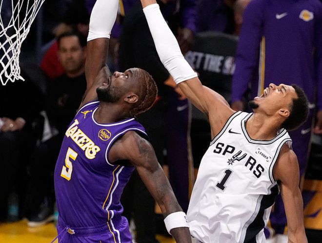 海斯和艾頓輪流上分,打停馬刺。中段索漢轟進三分球,東契奇上籃+八村塁三分球追到隻差2分。決勝時刻,東契奇和文班亞馬輪流罰球,東契奇撤步三分球打破平衡,文班亞馬被包夾隻能給隊友傳球,但手感不好。此後文班亞馬進攻犯規6犯離場,心態有些失衡,艾頓繼續罰球,斯瑪特兩罰全中拉開4分分差後,奧利尼科上籃維持懸念。危急時刻,斯馬特踩線發球給馬刺最後一攻機會,拉拉維亞推人犯規,尚帕尼第一罰打鐵,最終湖人118-116驚險擊敗馬刺。