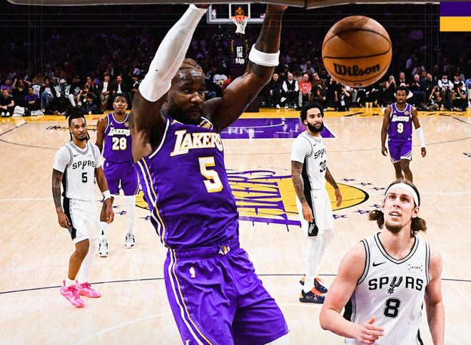 北京時間11月6日,NBA常規賽繼續進行,西部一場強強對話,湖人主場對陣馬刺。湖人此前戰績6勝2負,除瞭揭幕戰輸給勇士之外,之後7戰6勝,球隊勢頭正盛。馬刺則在經歷開局5連勝後,被太陽爆冷終結連勝紀錄。湖人本賽季的崛起方式讓人意外,詹姆斯長時間不打的情況下,東契奇場均41.3分11.5籃板8.3助攻+裡夫斯場均31.1分5.1籃板9.3助攻,雙核驅動能力太強瞭。上一場打開拓者,即便這兩人都不在,艾頓29分+八村塁28分+尼克史密斯25分,角色球員也挑起大梁。不過本場比賽前,湖人連續迎來壞消息。