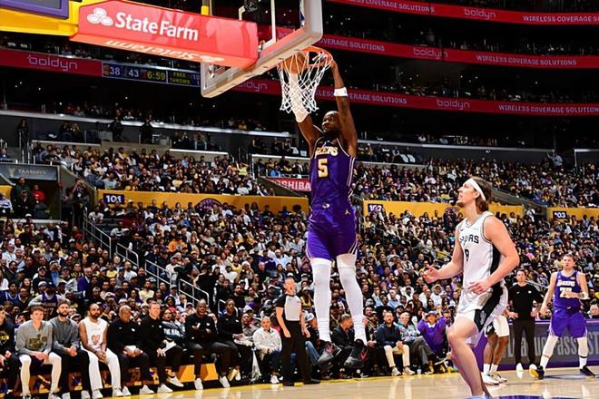 本場比賽中,湖人的先發中鋒德安德烈-艾頓(DeAndre Ayton)繼續著自己近期的強勢表現。艾頓全場出場33分07秒,投籃13中9,罰球4中4,得到瞭22分10籃板1搶斷2蓋帽的兩雙數據,其中還包括瞭4個前場籃板,還有3次犯規,正負值為+1。艾頓在進攻端繼續著自己的出色表現,他的內線得分能力以及中近距離投籃穩定性都相當突出,他的進攻效率依然是非常驚人的。不僅如此,艾頓在前後場籃板爭搶方面的積極性也是肉眼可見的,而且他在防守端也是起到瞭內線支柱的作用並且鎮守住瞭球隊的內線。艾頓在本場比賽中也是將自己各方面的特點發揮瞭出來,球隊能夠戰勝實力不俗的對手,也和他的強勢發揮密切相關。