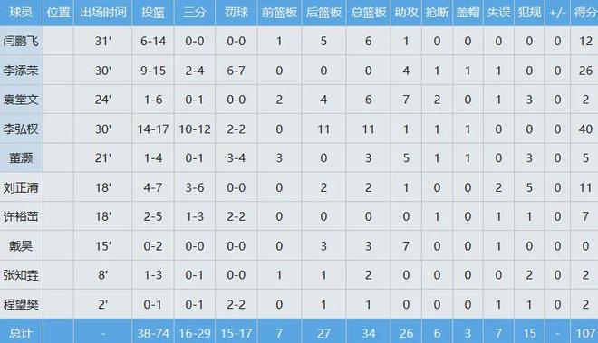 此役李弘權大殺四方,投籃17中14,其中三分球12中10,爆砍40分11板大號兩雙,籃筐對他來說就如大海那般寬闊。