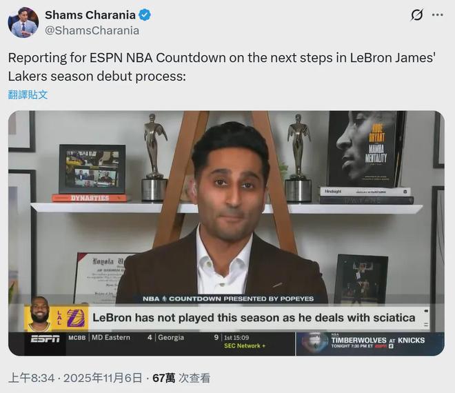 “詹姆斯可能會跟NBA發(fā)展聯(lián)盟的南灣湖人隊一起訓(xùn)練,等湖人從5連客回來之後再跟全隊合練,本賽季的個人首秀可能會在11月中旬,但現(xiàn)在一切都是未知的。”Shams這麼報道。