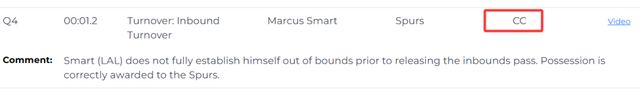 報(bào)告指出,比賽最後0.4秒,馬刺的約翰遜是球出界前最後觸球的球員,球權(quán)是屬於湖人的,但裁判把球權(quán)錯(cuò)判給馬刺,認(rèn)為是斯馬特最後觸球。這次錯(cuò)判,湖人吃虧,馬刺獲利。