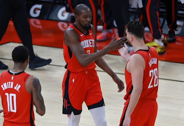 但從比賽過程來看,火箭的表現其實並沒有太差,開局的兩連敗,火箭僅僅隻輸瞭5分,殘陣火箭的攻防體系並沒有完全崩盤。沒有范喬丹,烏杜卡就讓杜蘭特出任控球核心,後續大膽啟用奧科吉進入首發,圍繞年輕人的活力盤活體系,關鍵時刻再交由杜蘭特收比賽。