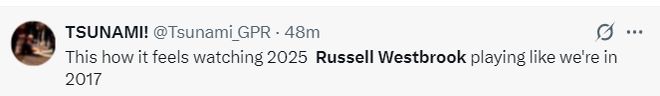 美球迷:我感覺自己在2025年看到瞭2017年的威少打球。(MVP賽季)