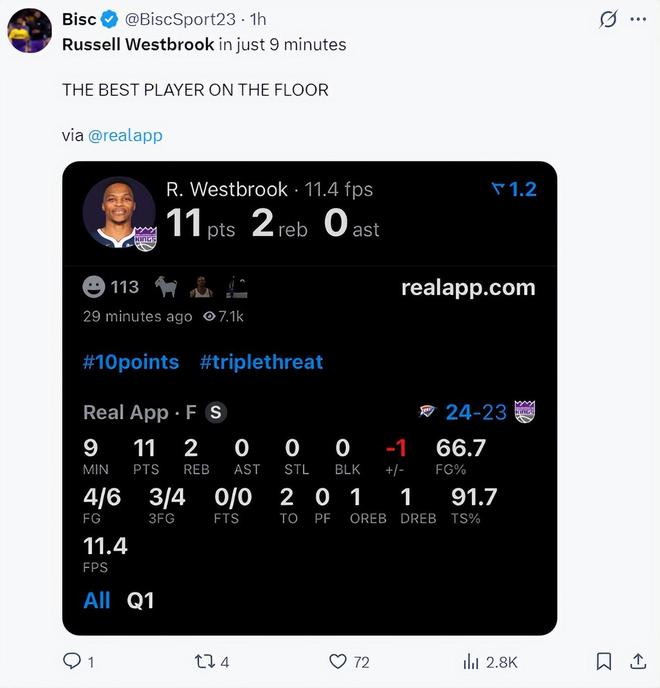 各隊都對他敬而遠之,仿佛他就像瘟疫一樣,如今他卻成為國王自由市場簽下最成功的運作。威少從來沒有獲得應有尊重,他隻是需要一個機會。