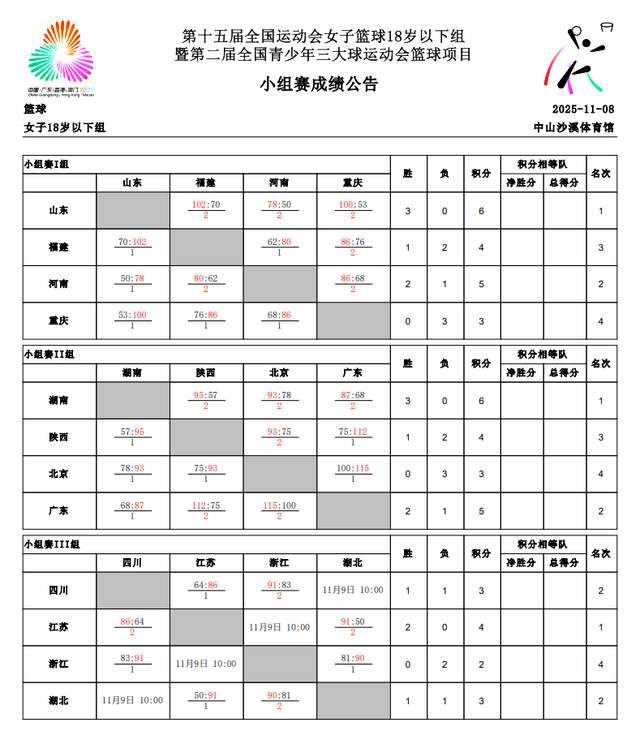 第三小組的2場收官之戰要到11月9日進行。該組前2輪戰罷,江蘇2連勝,位列小組第一,湖北隊1勝1負,小組第2,四川隊1勝1負,並列第2,浙江隊2連敗墊底。