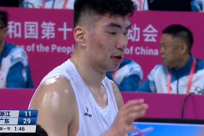 上半場廣東隊58比34領先。胡明軒10分,趙睿13分6籃板6助攻,沈梓捷五投全中10分。浙江隊餘嘉豪9分5籃板,王奕博11分。