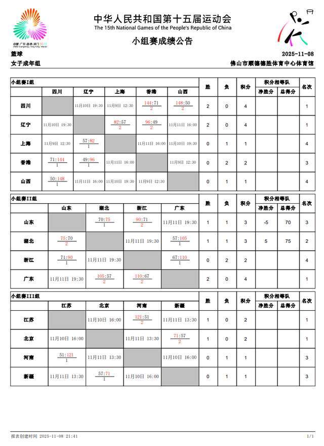 第十五屆全運會女籃成年組已經(jīng)打完瞭第二比賽日的全部4場比賽,隨著晚上2場比賽,山東被湖北隊爆冷逆轉(zhuǎn),廣東大勝浙江隊之後,全運女籃成年組的積分榜有瞭新變化,不得不說,四川隊真是太穩(wěn)瞭,不奪冠都說不過去瞭。