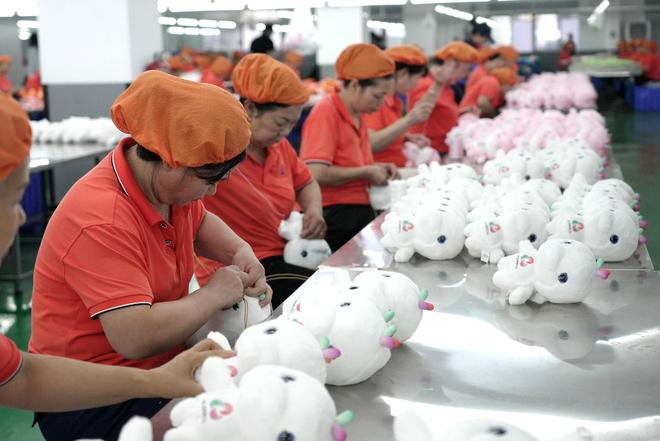 在康達玩具生產車間,數百名工人正加緊趕制吉祥物公仔。