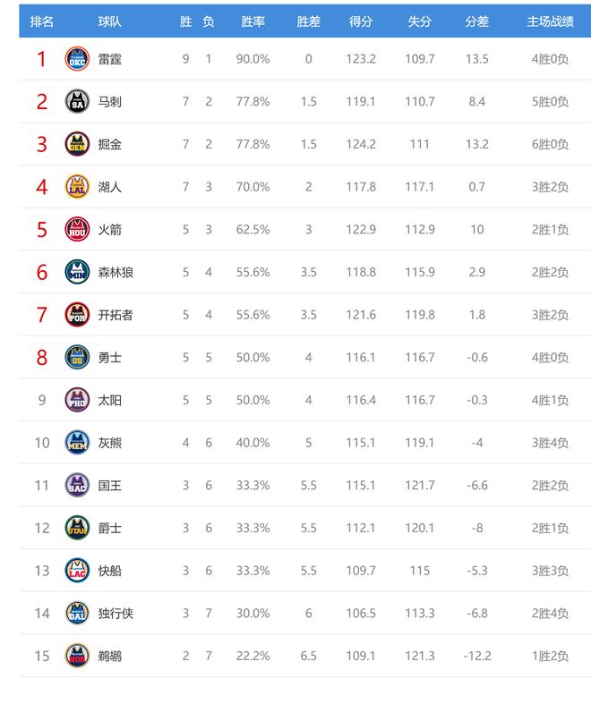 北京時(shí)間2025年11月9日,今日NBA有8場(chǎng)比賽,湖人、快船、掘金、馬刺、太陽、獨(dú)行俠、開拓者、鵜鶘參與其中,賽後西部排名發(fā)生瞭變化。