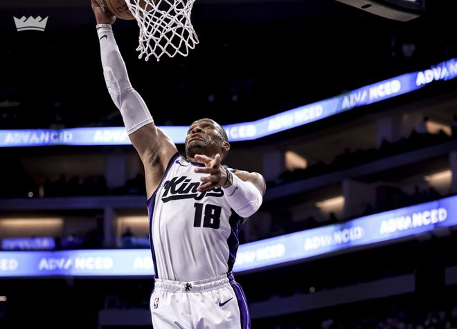 國王這邊,主要看點就是威少。本賽季威少拿著1年360萬無保障底薪,場均貢獻16分7.1籃板6助攻。特別是最近三場比賽,進入首發(fā)打四號位的威少,對陣掘金拿到26分12籃板6助攻;對陣勇士拿到23分16籃板10助攻;對陣?yán)做玫?4分6籃板9助攻,國王的下限全靠威少和德羅贊兩位老將撐著!球隊最大的問題就是沒有鋒線,經(jīng)常擺出施羅德+拉文+德羅贊+威少四後衛(wèi)的首發(fā)陣容。但拉文絕對是一個隱形深坑,場均25分?jǐn)?shù)據(jù)不錯,但他在場百回合球隊輸14.1分,他不在場球隊百回合贏7.1分,On-Off值是-21.2!