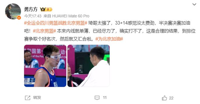 北京記者勇方方賽後高呼:周琦太強(qiáng)瞭, 拿到33+14感覺(jué)都沒(méi)有怎麼費(fèi)勁兒。