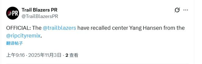 北京時間11月3日,開拓者官方宣佈召回楊瀚森,根據(jù)此前報道,他將隨隊參加明日對湖人的比賽。隊記Mike Richman在播客上談到瞭楊瀚森的話題。他指出開拓者下放瀚森到發(fā)展聯(lián)盟,有可能隻是訓(xùn)練而不參加比賽,隨後他分析瞭其中的原因。以下是Richman播客關(guān)於瀚森的內(nèi)容——