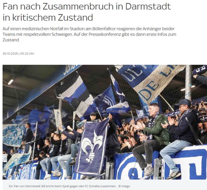 雷速體育10月30日訊 在今天凌晨的一場德國杯比賽中,達姆施塔特4-0大勝沙爾克,淘汰對手晉級。比賽中一度出現了緊急情況,導致比賽短暫中斷。