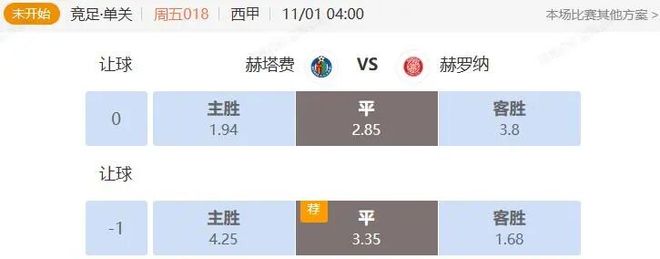 數據方面初始給到主讓0.25數據支撐面,后市變化不大。赫塔費盡管實力也一般般,但就目前形勢看,他們在各方面都比赫羅納要好一些,目前讓步也平穩,應該有望在主場1球小勝拿下對手,進球數不會超過2個。