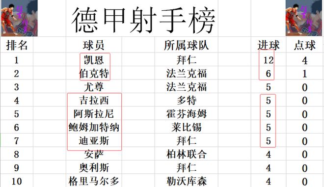 射手榜方面,凱恩同樣是高歌猛進(jìn),大有早早終結(jié)懸念之意,12球高居榜首,比第2的伯克特足足多了一倍。吉拉西今天打入制勝球后追上尤尊,阿斯拉尼,鮑姆加特納和迪亞斯,幾人5球并列第3,落后凱恩7球。