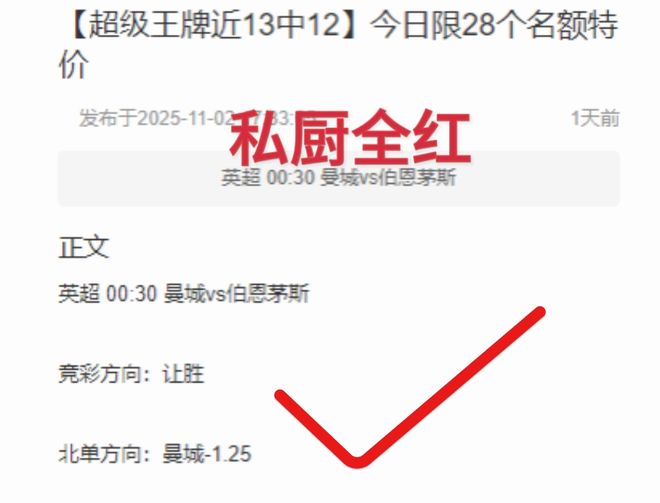 前日公推埃爾切再次成功拿下!私廚全紅!超級(jí)王牌曼城穩(wěn)穩(wěn)拿下!福利場(chǎng)次AC米蘭成功拿下!今日PP有料團(tuán)隊(duì)調(diào)整狀態(tài)繼續(xù)奉上足球賽事/澳超等精選賽事!同時(shí)想了解更多詳細(xì)內(nèi)容可添加下方客服!