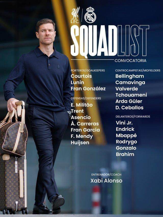 歐冠聯(lián)賽階段第4輪焦點大戰(zhàn),皇家馬德里客戰(zhàn)利物浦。白衣軍團公布大名單,亞歷山大-阿諾德復(fù)出,隨隊出征舊主。據(jù)現(xiàn)有信息,前紅軍太子無望首發(fā),82仍將客串右閘。皇馬大名單: