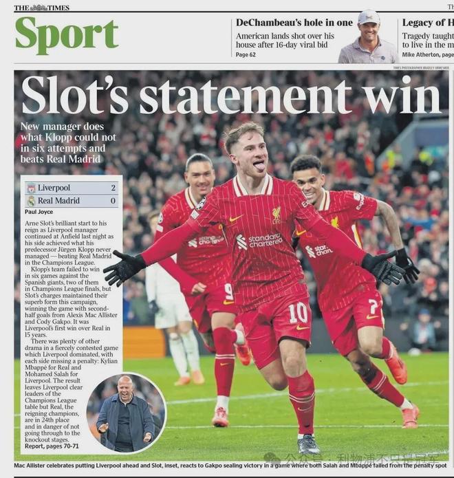 一年以後,時過境遷。利物浦此刻落後英超榜首7分,上周末才剛剛終結瞭英超4連敗,斯洛特依然飽受質疑。但此時迎來本賽季在西甲和歐冠14場贏瞭13場的皇馬、過去9次交鋒利物浦隻贏瞭1次的皇馬,我倒認為對利物浦是一個機會,一個真正讓球隊重整旗鼓、重新相信自己本賽季依然大有可為的機會。