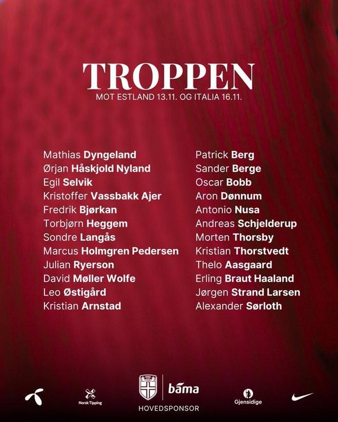 北京時(shí)間11月4日,挪威國(guó)傢隊(duì)11月世預(yù)賽大名單公佈,哈蘭德領(lǐng)銜,厄德高傷缺。