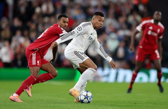 第10分鐘,維爾茨前場(chǎng)反搶拿到球權(quán),隨后麥卡利斯特的打門偏出。第17分鐘,米利唐射門被擋出,給了利物浦反擊機(jī)會(huì),最后埃基蒂克的射門同樣被封堵,沒有威脅。第18分鐘,皇馬快速反擊,姆巴佩禁區(qū)弧頂迎球打門高出。