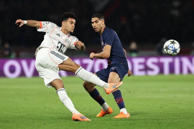 開場不到4分鐘,場上比分被改寫:巴黎中場傳球被斷,拜仁快速反擊,奧利塞高速插上形成單刀之勢,最后打門被撲出,隨后迪亞斯馬上補射破門,幫助拜仁1-0取得夢幻開局。