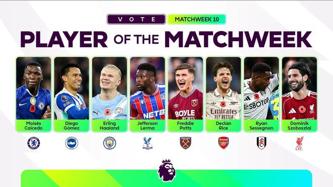 北京時間11月4日,英超官方公佈瞭第10輪比賽的最佳球員候選名單,其中賴斯、哈蘭德、索博斯洛伊、凱塞多等人在列。