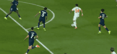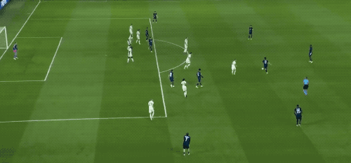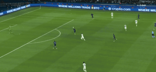 第44分鐘,格納布里腳后跟妙傳,基米希插上的射門差之毫厘,巴黎門前風聲鶴唳。
