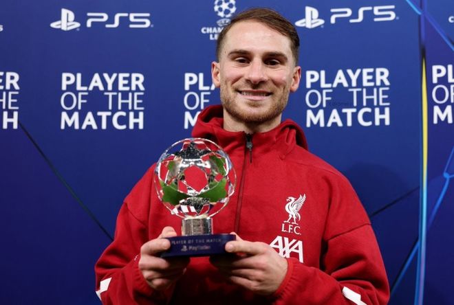 也正是這記重要的頭球破門,賽后,麥卡利斯特當選歐冠官方全場最佳球員。上月的國家隊友誼賽,他也打進一球,但隨后在俱樂部表現一般,今晨這個最佳獎杯,對小麥當然是一個巨大的鼓舞。