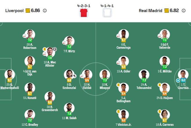 據(jù)德轉(zhuǎn)統(tǒng)計(jì),皇馬全隊(duì)身價(jià)14億歐,利物浦全隊(duì)身價(jià)11.5億歐,這是一場價(jià)值25.5億歐的重磅對(duì)決。