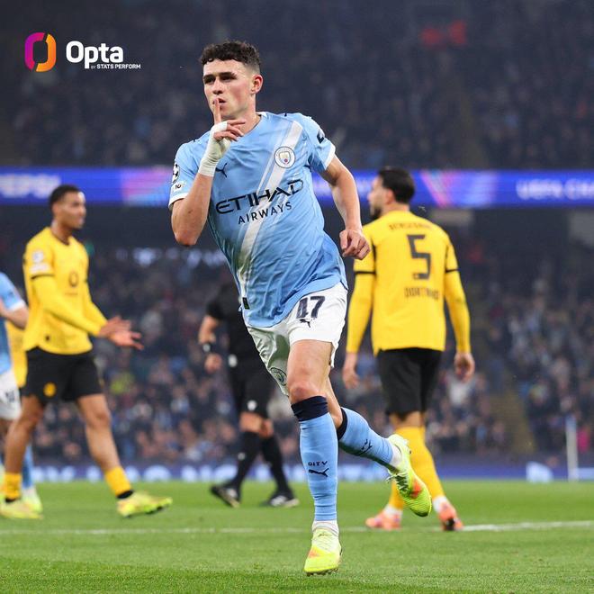 據統計,自2023-24賽季開始以來,福登在各項賽事中為曼城打入了10粒禁區外遠射進球,是同期英超俱樂部球員中最多。