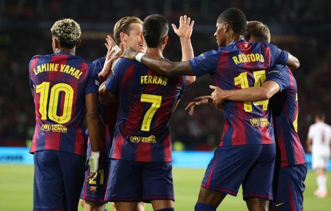 本場比賽,巴薩派出首發的陣容:25-什琴斯尼、3-巴爾德、4-阿勞霍、23-孔德、24-埃里克·加西亞、16-費爾明、17-卡薩多、21-德容、7-費蘭、10-亞馬爾、14-拉什福德