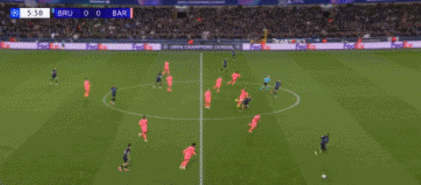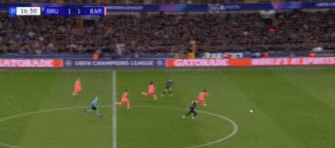 第6分鐘,布魯日快速反擊,博爾赫斯帶球殺入禁區后送出助攻,特雷索爾迪捅射破門,比分1-0領先。據統計,巴薩近9場各項賽事比賽都有丟球,總計14球,這是2013年3月之后連場丟球的最差紀錄。