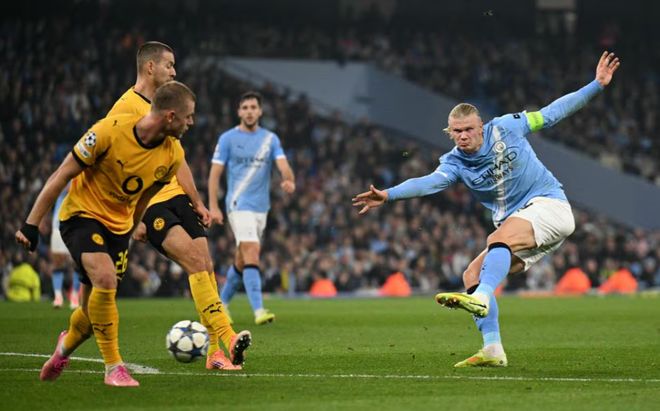 結果曼城基本壓著打多特,進攻端火力全開,將比賽變為一邊倒。連續幾波攻勢之后,曼城在第22分鐘打破了僵局,來自福登的個人能力,一腳貼地斬直接破門,隨后第29分鐘,多庫傳中助攻哈蘭德爆射破門,比分2-0再下一城。整個上半場,多特唯一一次打正來自阿德耶米,后者連續盤帶后的打門被撲出。