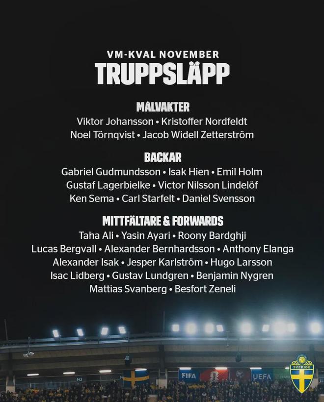 哲凱賴什因傷落選瞭最新一期瑞典國傢隊大名單。