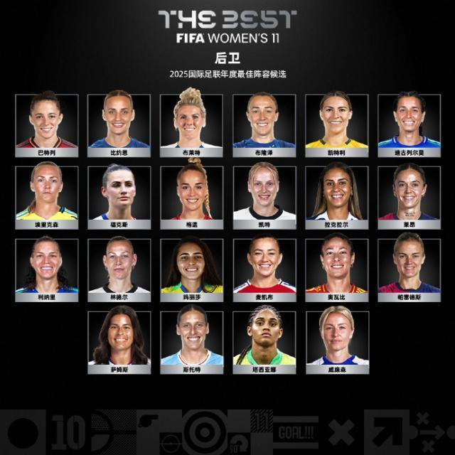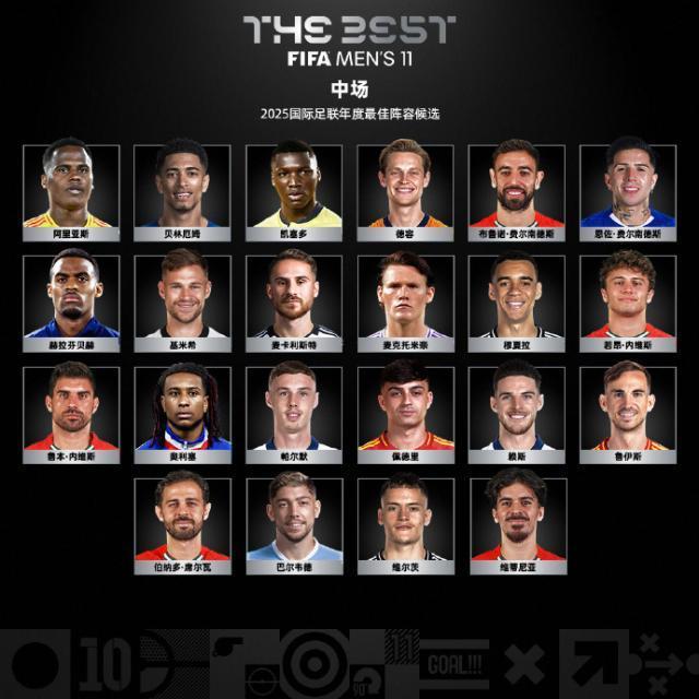 國際足聯(lián)(FIFA)公布2025年度各項集體及個人大獎候選名單,名單由國際足聯(lián)及其他足球相關(guān)機(jī)構(gòu)代表組成的專家小組制定。其中男子最佳球員(足球先生)11名候選、女子最佳球員17名候選;男子最佳門將8名候選、女子最佳門將7名候選;男子最佳教練7名候選,女子最佳教練5名候選;男女子最佳陣容各個位置分別22名候選。