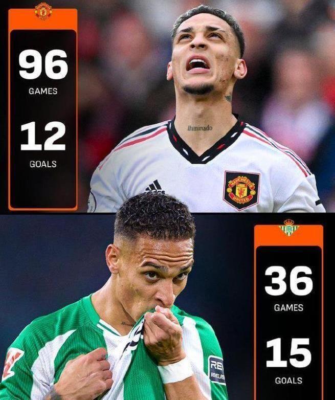 眼看著安東尼在皇家貝蒂斯大放異彩,紅魔球迷內心是五味雜陳。要知道當初曼聯(lián)引進這位巴西前鋒,可是砸下近億歐元(9500萬歐元)的轉會費,但是怎奈安東尼在紅魔的表現(xiàn)始終不盡如人意。到目前為止,安東尼代表皇家貝蒂斯出戰(zhàn)36場比賽,已經為球隊貢獻15粒進球。相反安東尼在曼聯(lián)的三個賽季,96場比賽中只有12球入賬。