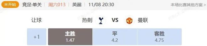 亞洲數據熱刺主讓平手中位起步,後市曼聯有所拉低,以兩隊的定位來看屬於同檔球隊,開平手對於熱刺明顯偏淺,不過由於曼聯狀態火熱逐步走入正軌,反觀熱刺連續輸給切爾西和紐卡斯爾等強隊且周中打瞭歐冠體能處於劣勢,主動淺開並且拉低曼聯就有做熱曼聯的嫌疑並不可信,歐洲數據2.60的主勝搭配3.40的中庸平局,在平局有所防范的情況下主勝則成為心裡冷門陪付壓力並不大,因此本場我看好主場作戰的熱刺不敗。
